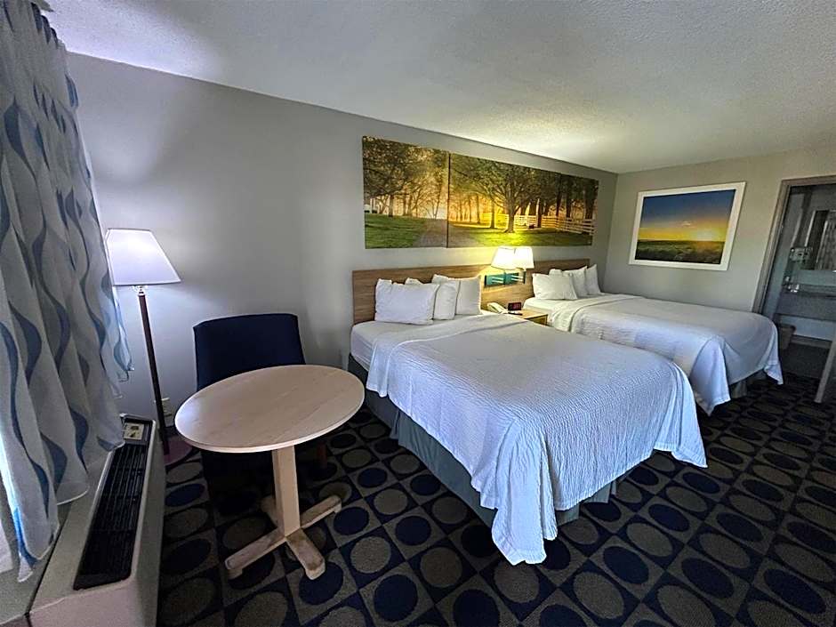 Room features a microwave and a small refrigerator.